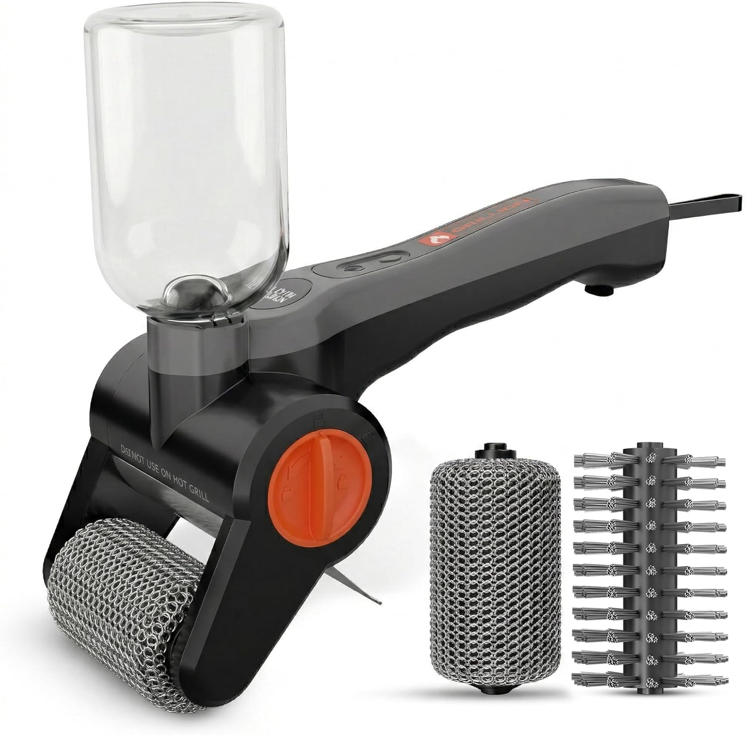 The Grillion Electric Grill Brush arrives as a complete and well-thought-out cleaning kit, eliminating the need for additional purchases or accessories. Inside the package, users will find a cordless motorized handle that integrates both a rechargeable battery and a built-in soap dispenser. This combination already sets the foundation for a streamlined cleaning experience. Alongside the handle, there are two interchangeable brush heads—a chain brush and a wire brush—each designed to handle different types of cleaning tasks, from light maintenance to more aggressive scrubbing.